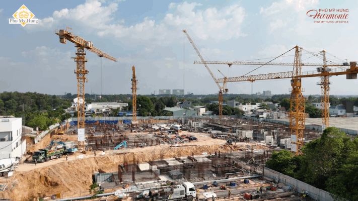 Tiến độ thi công tại Phú Mỹ Hưng Harmonie đang có những chuyển biến tích cực khi phần móng và hầm dần đi đến giai đoạn hoàn thiện. Toàn bộ công trường duy trì nhịp độ triển khai ổn định, tạo tiền đề vững chắc cho các bước phát triển tiếp theo của dự án.